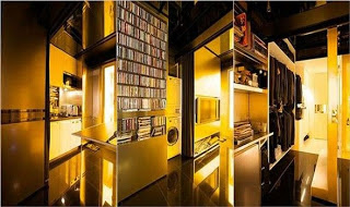 Το ίδιο συμβαίνει και με τον τοίχο όπου έχει τοποθετηθεί ο καναπές, ο οποίος κρύβει πίσω του ένα μεγάλο κρεβάτι που ανοίγει το βράδυ. Το πιο εντυπωσιακό, όμως, είναι η αίθουσα κινηματογράφου, η οποία δημιουργείται μόλις ο Gary τραβήξει τις κουρτίνες στους δύο αναδιπλούμενους τοίχους κουζίνας και υπνοδωματίου!